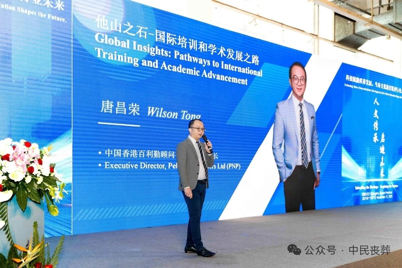 The founder of PNP, Mr. Wilson Tong, was invited by Changsha Funeral Institute as a speaker of its anniversary event. Mr. Tong’s topic was “Global Insights: Pathways to International Training and Academic Advancement”. In the previous 5 years, here are the unique position of PNP as a hub for international professional education resources into Asia to higher the professionalism of the industry in the region. PNP has partnered with HKU School of Professional and Continuing Education to launch the first International deathcare course in Hong Kong; PNP also partnered with NFDA to introduce Asia’s version of “Memorial Arranger Training” certification program; PNP worked with European professionals to introduce China the first mortuary make-up program to China; PNP worked with the Changsha funeral school for the research of international funeral regulations and laws;